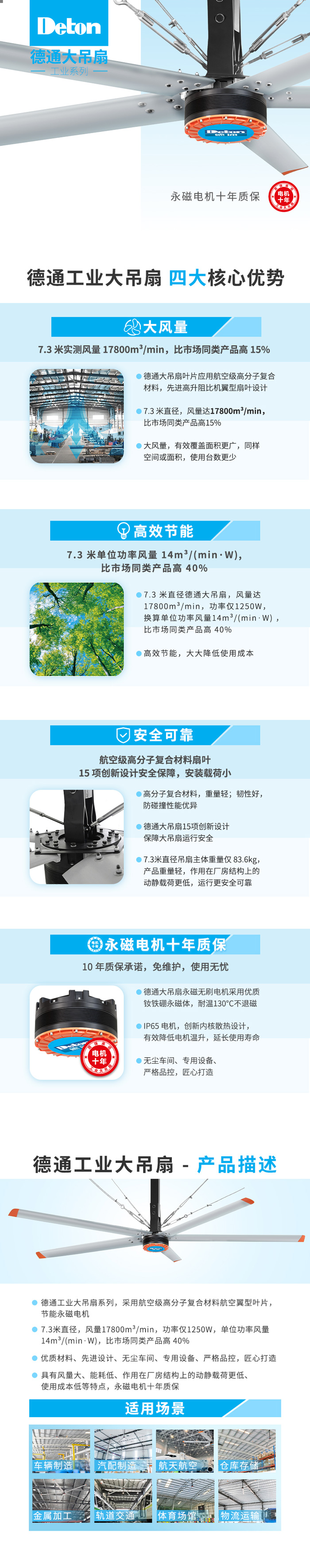 【高效節(jié)能】:7.3米單位功率風量14m3/(min·W),比市場同類產(chǎn)品高40%